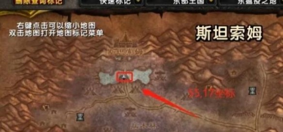1、首先打開地圖來到東瘟疫之地的55,17坐標位置。
