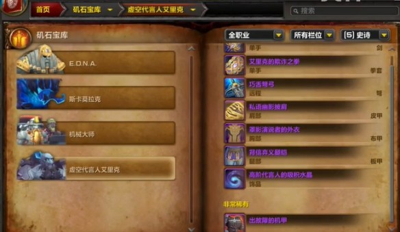 1、史詩難度磯石寶庫尾王虛空代言人埃里克掉落【出故障的機甲】。