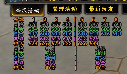 冒險、老兵、勇士、英雄、神話五種不同品質(zhì)的裝等數(shù)值可以查看。