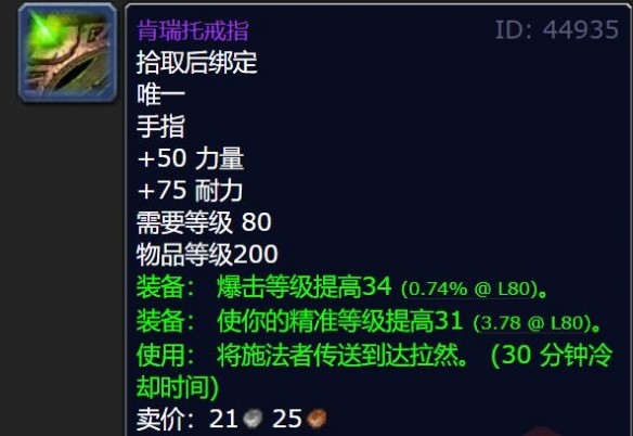 4、這個戒指的快速傳送達拉然的技能非常不錯,對于經常回主城的玩家可以購買一個使用。