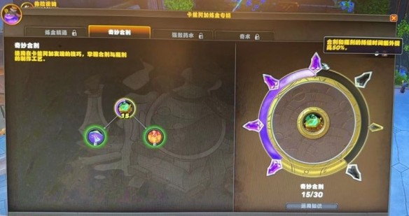 4、此時煉金點可以到達25點,選擇一個專精,這里選擇“奇妙合劑專精”