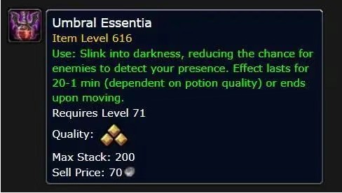 1、影遁藥水是魔獸世界11.2加入的一個新藥水,叫做Umbra Essentia,可以實現(xiàn)影遁效果。