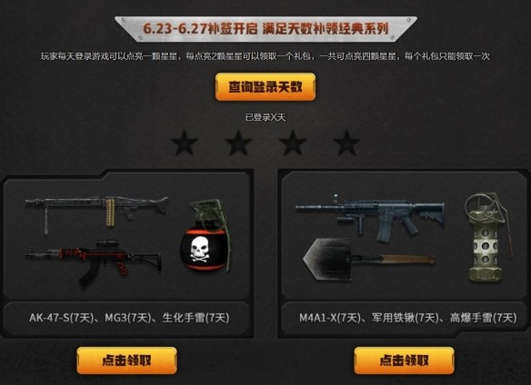 4、每天登錄游戲可以點亮一顆星星,每點亮2顆星星可以領取一個禮包,一共可點亮四顆星星。