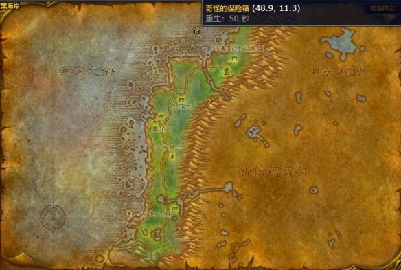 1、前往黑海岸坐標(biāo)(48.9,11.3)/貧瘠之地(56.7.8.3)位置處,找到【奇怪的保險(xiǎn)箱】;