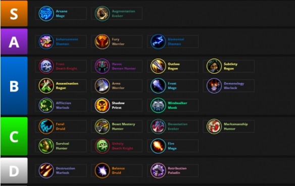 B級別:武器戰士、踏風武僧、奇襲潛行者、浩劫惡魔獵手、狂徒潛行者、惡魔術士、冰霜死亡騎士、敏銳潛行者、痛苦術士、冰霜法師、暗影牧師。