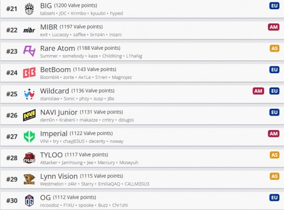 中國三支戰(zhàn)隊RA、TYLOO和LVG均打進TOP30!同時意味著根據(jù)該排名的BLAST.tv奧斯汀major第一階段種子順位已經(jīng)確定,TYLOO為五號種子、LVG為六號種子。