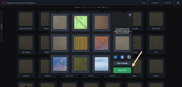 復(fù)制準(zhǔn)星代碼(如職業(yè)選手代碼或趣味代碼)。