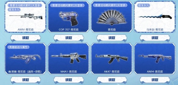 穿越火線上線全新的青花瓷套裝活動(dòng),本次的活動(dòng)當(dāng)中玩家們可以通過(guò)登錄游戲就能夠在活動(dòng)當(dāng)中領(lǐng)取一系列的青花瓷題材的武器了,更有AWM-青花瓷、馬來(lái)劍-青花瓷兩款全新武器首發(fā)上線,玩家們可以期待一下。