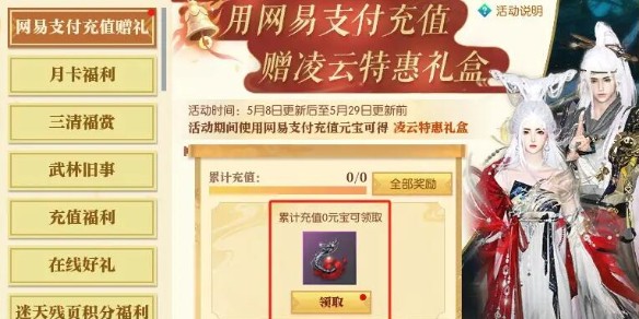 1、活動期間使用網(wǎng)易支付充值元寶達(dá)到一定階段即可獲得【凌云特惠禮盒】;