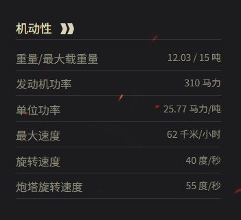 4、坦克的發動機為310馬力可以提供高達62千米每小時的速度。
