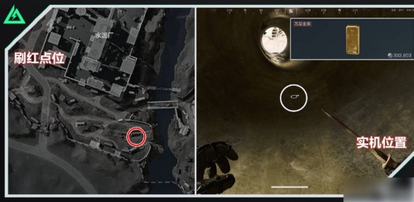 1、水泥廠入口左手邊,在圓形機器的地上上會刷金條。