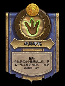 · 改動后:[1鑄幣]戰斗開始時:使每個不同類型的各一個友方隨從獲得+3/+2。永久提升此效果。