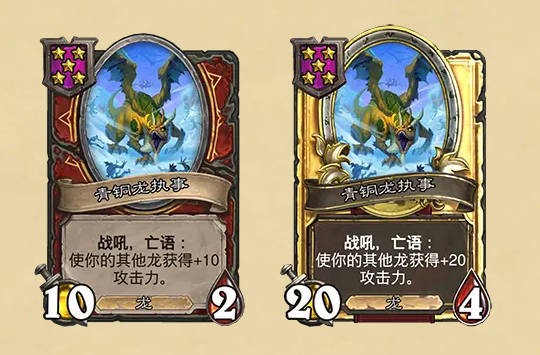 · 改動前:2/2。在你的回合結束時,每有一個金色友方隨從,便獲得+2/+2。