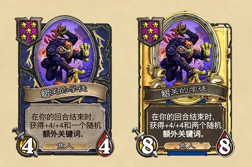 · 改動前:[等級4]戰吼:使一個魚人獲得+4/+4和一個隨機額外關鍵詞。