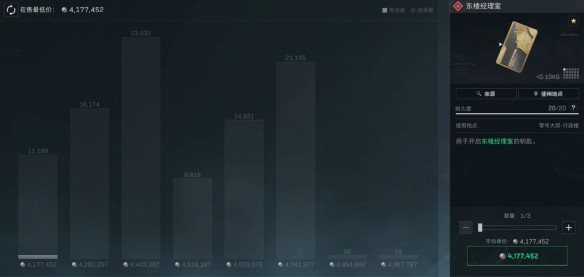 2、我們需要在游戲中的交易行盯著想要買的卡多次刷新,注意它的柱狀圖。